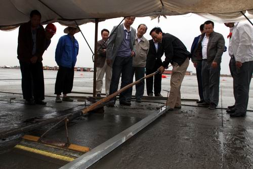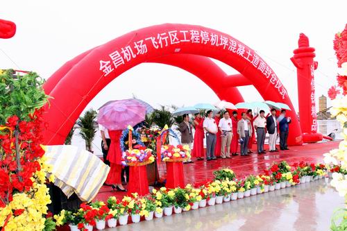 2010年8月20日上午10時,金昌機場飛行區(qū)停機坪混凝土道面工程順利封倉。甘肅省交通運輸廳、金昌市政府、甘肅機場建設投資管理公司、甘肅機場項目建設指揮部及施工單位等有關單位領導現場見證了道面工程順利封倉的時刻。