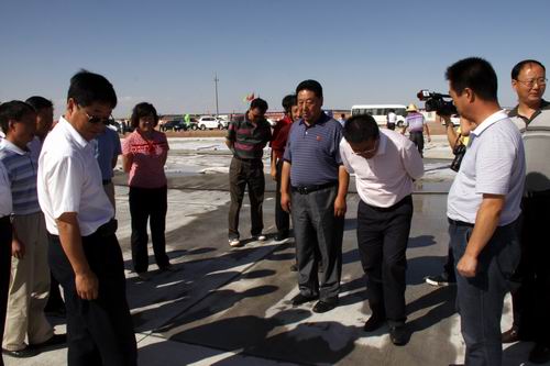 8月21日,由喬新山局長率領的民航西北管理局工作檢查組一行蒞臨金昌機場飛行區施工現場檢查指導工作。在飛行區停機坪建設工地,在了解到公司金昌機場項目部僅用了二十五個晝夜完成了總面積2.65萬平方米停機坪道面工程的情況后,對大家的辛勤勞動給予了充分肯定,并鼓勵廣大建設者繼續鼓足干勁、克服困難,發揚求真務實、艱苦奮斗的作風,確保工程按期完工。
