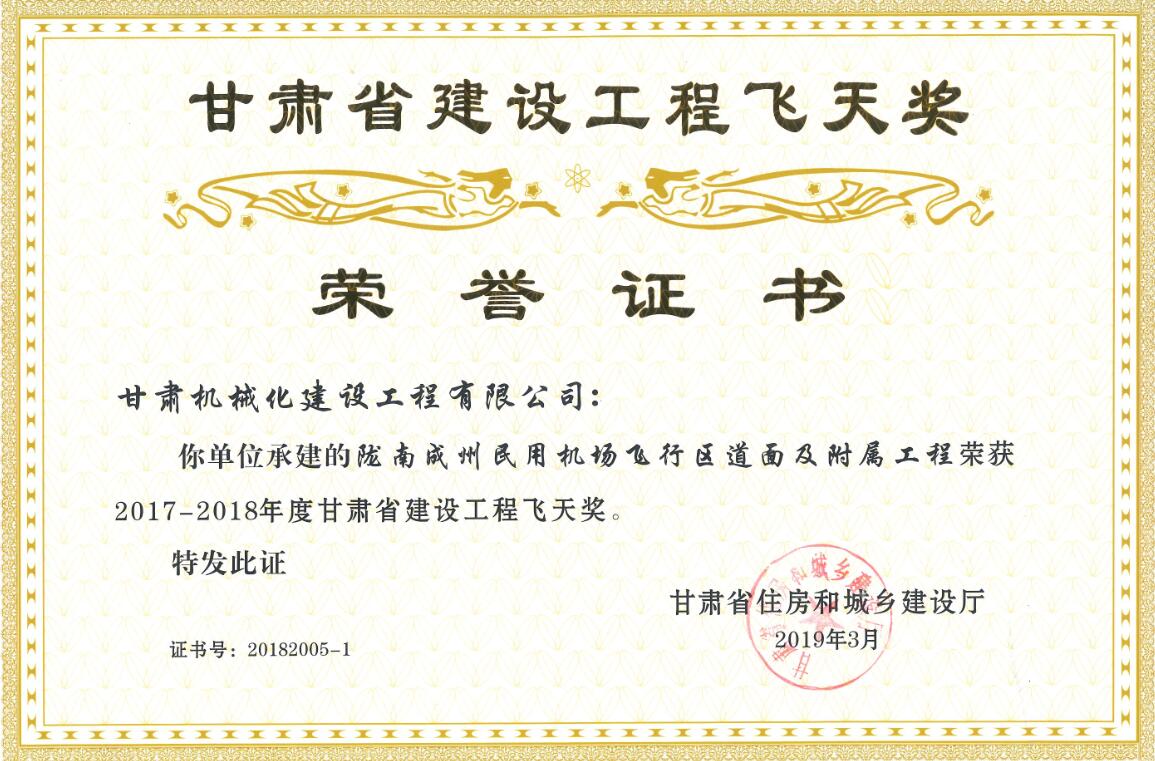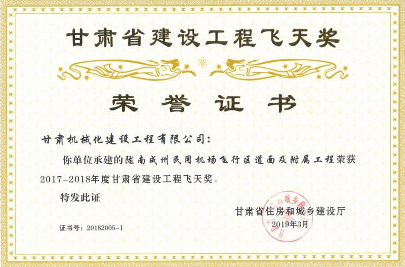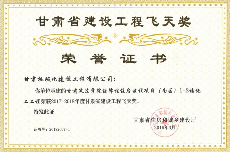 甘肅省住房和城鄉建設廳關于2017-2018年度(第二批)甘肅省建設工程飛天金獎和飛天獎入選名單公示已經結束,我司共有兩個項目榮獲甘肅省建設工程飛天獎。