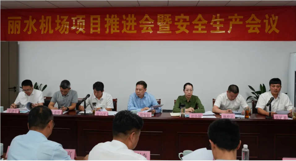 隨后,檢查組領導受邀參加了由建設單位組織的項目推進會暨安全生產會議。會上,浙江省機場集團黨委委員、工會主席鄭智銀,麗水市副市長藍伶俐等領導發表了重要講話,強調了安全生產的重要性,并對我司的工作給予了高度評價。我司總工程師劉錦榮代表場道施工單位做了表態發言。